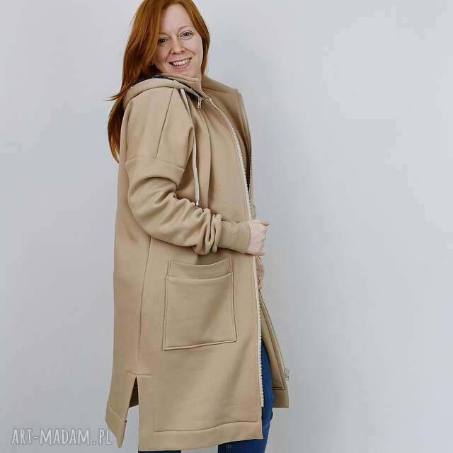 ręczne wykonanie płaszcz dzianinowy damski jasny karmel z meszkiem